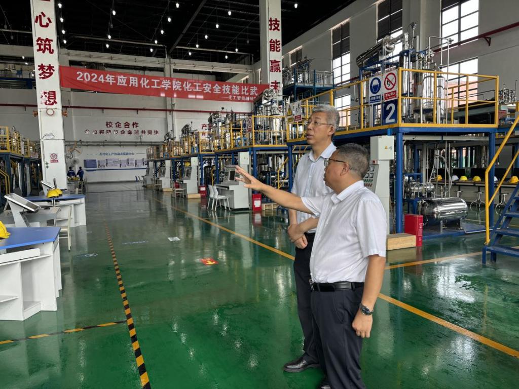 7月3日,王利文一行来到四川化工职业技术学院调研。在四川化工职业技术学院副院长邓启华陪同下,王利文一行参观了学校校园环境和应用化工学院工程实训中心。在调研交流会上,四川化工职业技术学院院长文申柳介绍了该校的基本情况。双方就专业建设、实训基地建设、市域产教联合体、行业产教融合共同体建设等方面进行深入交流。