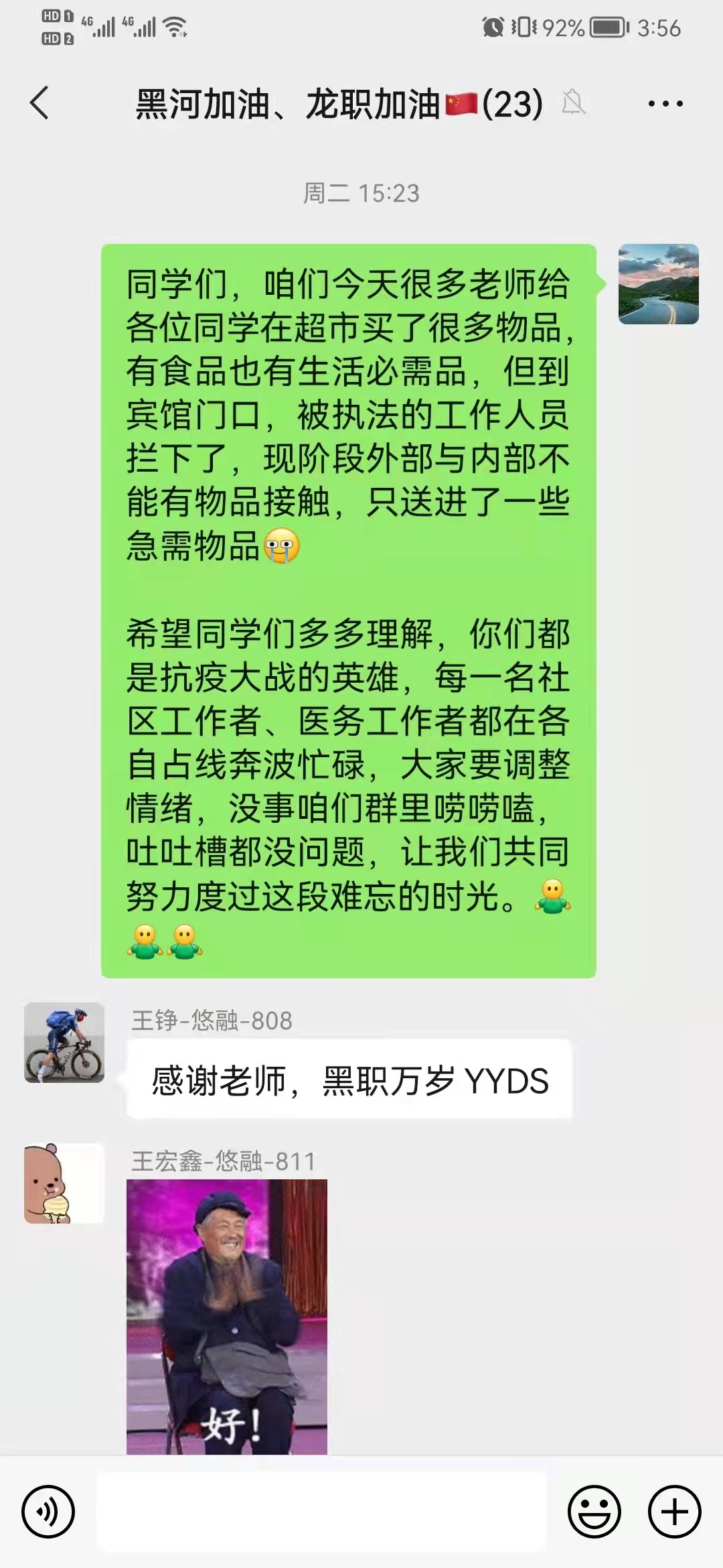 为隔离学生送去慰问品