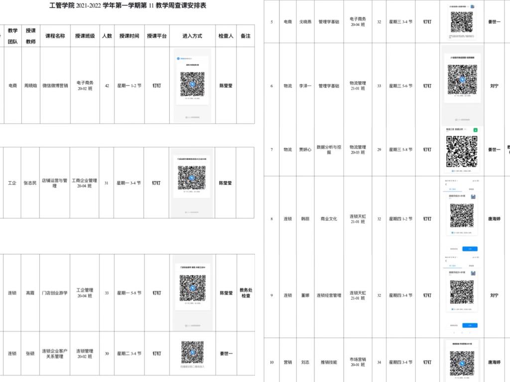 线上教学秩序查课安排表