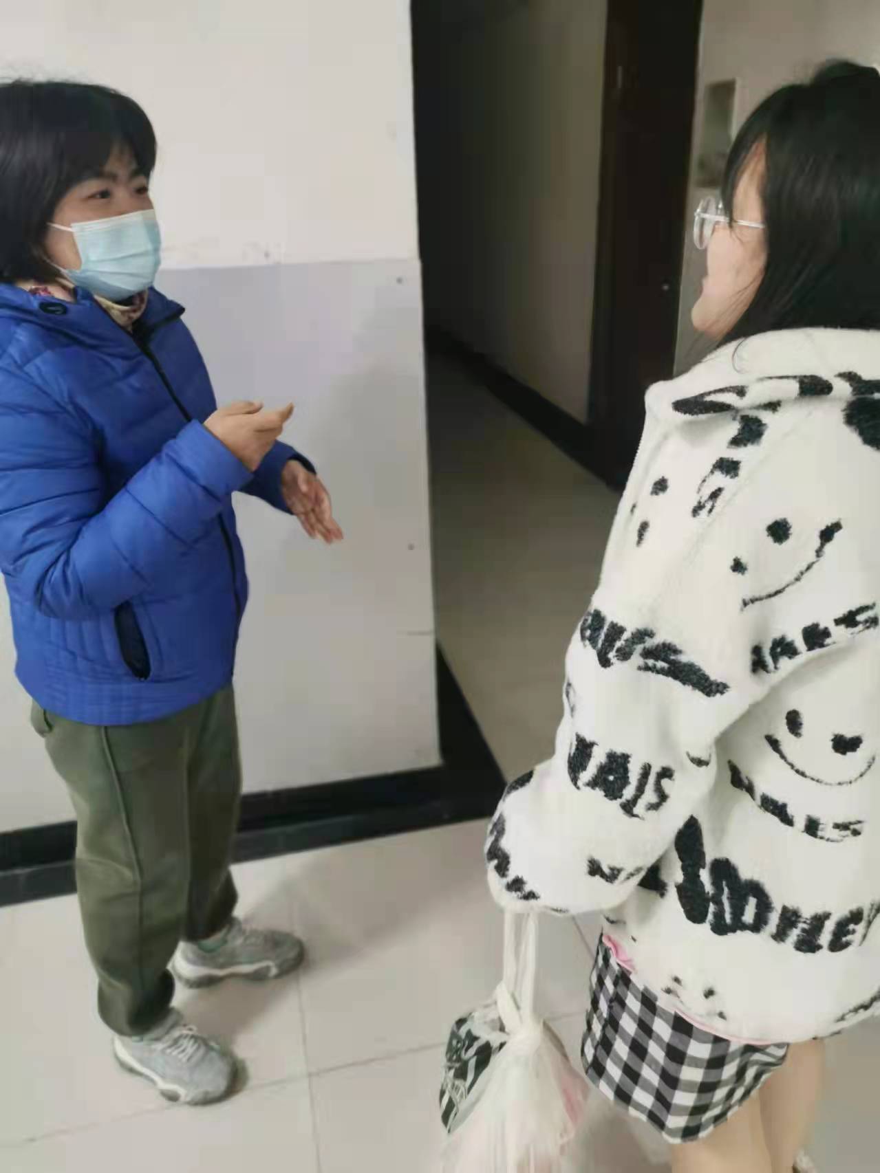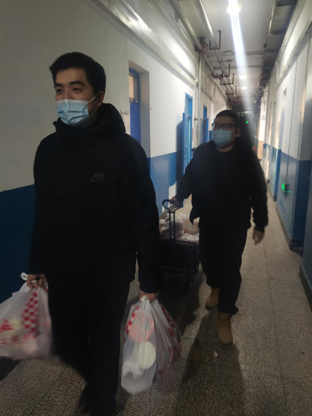 综合办主任施雯带领着外城志愿者每天跑超市,采买各种物资。各团队教师无课时轮流值班配合内城送餐、送物资、送医院,白天轮流值班,夜晚也需要有人不间断陪同。这期间涌现了好多感人的事迹……