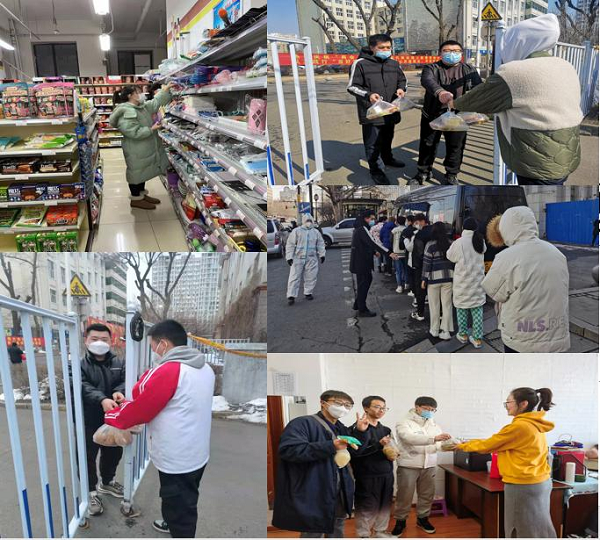 ▲教师、辅导员组织学生核酸检测,为学生带饭、打饭、采购物资