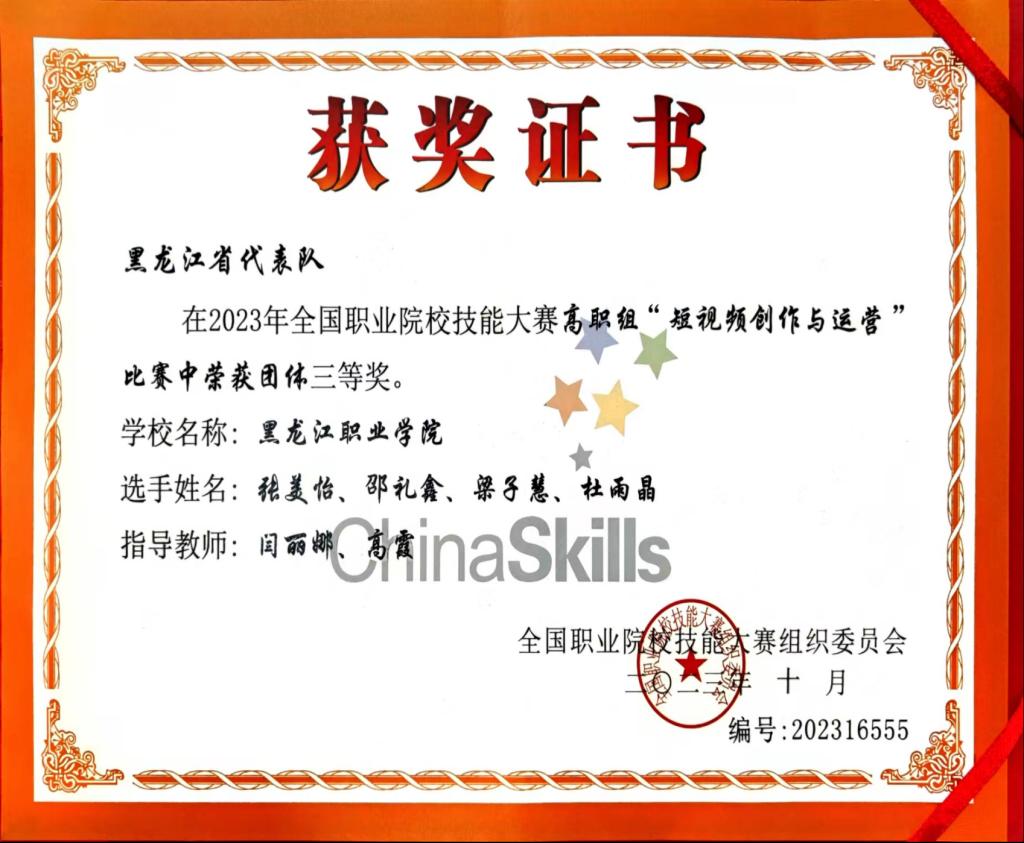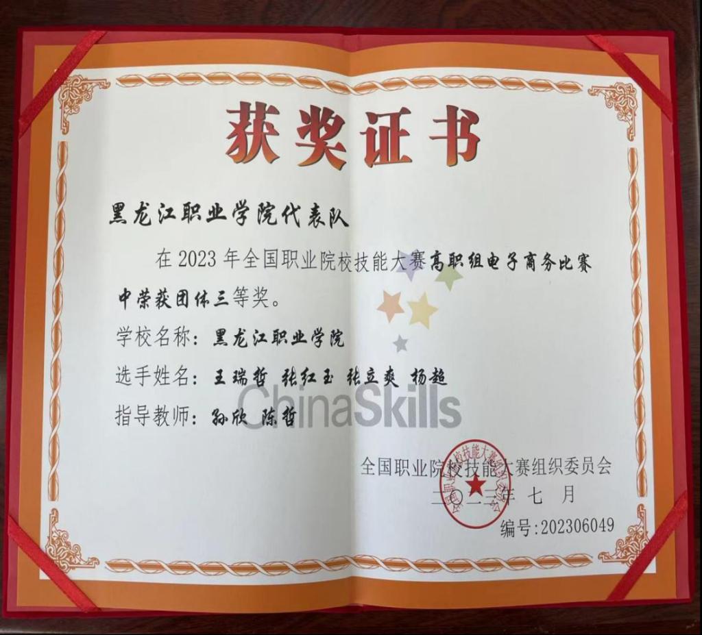 在学院领导的高度重视和大力支持下,经过参赛学生和指导教师的共同努力,数字商贸学院在教育部主办的2023年全国职业院校学生技能大赛中的电子商务、市场营销、融媒体内容策划与制作、短视频制作与运营赛项中获得国家级(A类赛项)三等奖4项;在黑龙江省教育厅主办的黑龙江省职业院校技能大赛暨国赛选拔赛中的电子商务、市场营销、融媒体内容策划与制作、短视频制作与运营、直播电商赛项中获省级(A类赛项)一等奖5项,在智慧物流作业方案设计与实施、创新创业、商务数据分析赛项中获得省级(A类赛项)二等奖3项,技能大赛成果丰硕。