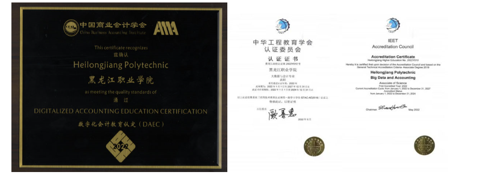 大数据与会计专业(原招生专业为“会计”,2021年变更为“大数据与会计”)开设于2004年,隶属于会计金融学院。经过近二十年的建设与发展,积累了较为丰富的专业建设经验,2020年9月开展现代学徒制,2021年6月通过黑龙江省高职院校高水平骨干专业建设项目验收,2021年被评为学校课程思政教育教学改革示范专业,2022年1月通过悉尼协议应用技术教育(GTAC-AD)认证,2022年11月立项为黑龙江省高职学校学习成果转换规则建设专业并通过首批黑龙江学分银行转换规则评审,2022年通过中国商业会计学会“数字化会计教育认定(DAEC)”项目的评审。