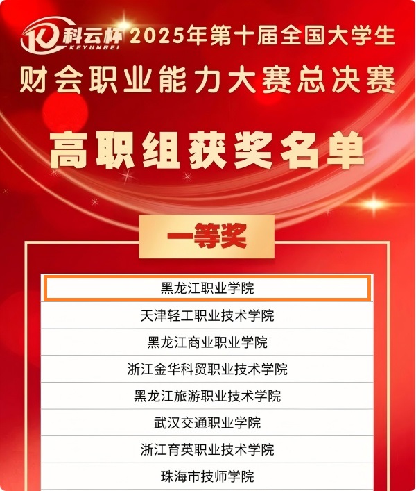 12月20日,第十届“科云杯”全国大学生财会职业能力大赛总决赛圆满落幕。KY开元官网会计金融学院学生董雯静、郑雪茹、张博雪、桂佳怡组成的参赛队伍,在指导教师孙海涛、于涵的精心指导下,历经两轮激烈角逐,从总决赛高职组120支精英战队中脱颖而出,最终以总分第一名的优异成绩斩获全国一等奖,登顶全国榜首,实现了在该项赛事中的历史性突破,充分彰显KY开元官网在数智财经人才培养领域的综合实力与育人成效。