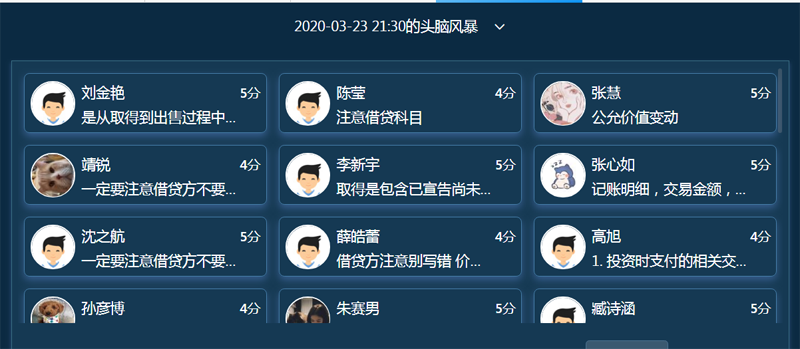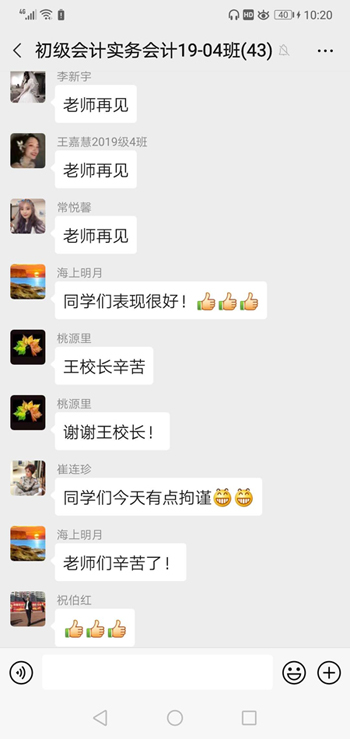3月24日3.4节,杜国用副教授作为学院代表展示校级“线上教学开放课”,在职教云和钉钉平台讲授《初级会计实务(一)》课程副校长。王明海亲临线上课堂指导,质控中心祝伯红主任、袁晓初、崔连珍全程督导,会计、机械、农牧、电气学院院长、全校9个学院70名教师自愿进行了线上观摩。课后师生们纷纷点赞,表示学有所获,受益匪浅。杜国用老师作为会计团队带头人率领团队多次获得全国会计专业技能大赛奖项,近3年教学质量评价为“A级”,此次线上教学依然保持A级水准。线上课堂“三步走”——课前有计划,课中有内容,课后有巩固。这种“闭环式”教学方法科学有效,学习逻辑严谨合理。课前,详细制定课程规划,重要内容抽丝剥茧,知识体系由浅入深;课中,教学资源规范美观,知识展示生动有趣,交流互动精彩纷呈,知识测验、头脑风暴、讨论问答、难点讲解、实务训练等有序实施;课后,随堂考试反馈学习情况,安排作业巩固教学成果。