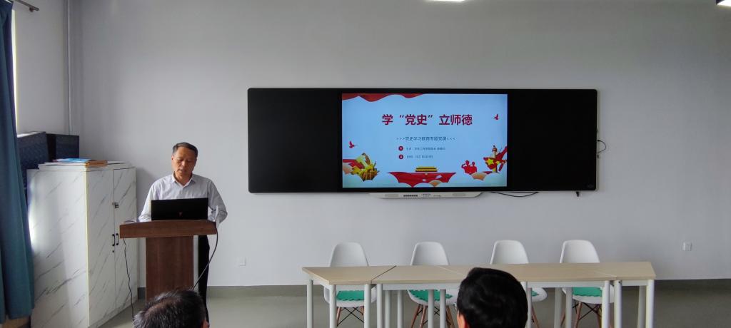 陈晓华以《学“党史”立师德》为题,从坚定信念、永葆先进,实事求是、与时俱进,百折不挠、勇于纠错,牢记宗旨、执政为民,对标准则,守正创新等方面讲解,并对标高校教师职业行为十项准则,争做新时代四有好教师。