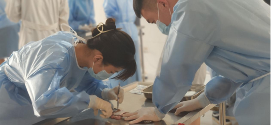 参赛形式为团队赛,每个团队2名选手,2019级、2020级可随意组队。共有22支队伍、44名选手参赛。比赛设置了徒手单手打结和离体肠管侧切开术两项实操项目,由孙洪梅、孙英杰、蔡皓璠和邹继新四位老师担任裁判。动物临床诊疗协会新换届的会长郝雷、副会长陈嘉楠、梁铭航、王玉同学,也积极参与了竞赛的准备、组织工作,锻炼了团队协作能力和问题解决能力,使协会活动传承有了良好的开端。