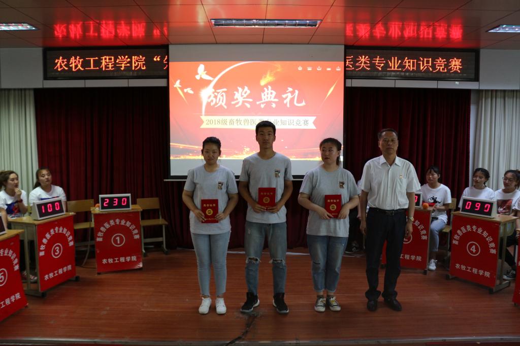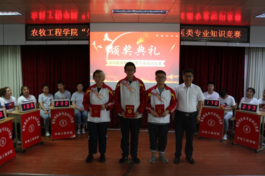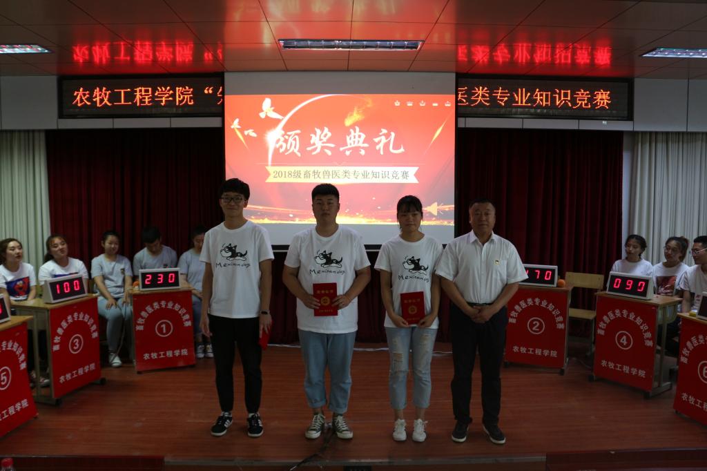该活动是成果导向“三赛三动”活动课程的必修课,也是农牧工程学院的专业特色活动,本次活动是活动课程大纲中活动设计的最后一个环节,6支代表队经过笔试、口试后代表班级进行比赛展演,经过激烈的必答、抢答、风险题等环节,最后动物医学18-03班、牧医(中)1801班和畜牧兽医18-02班分获前三名。