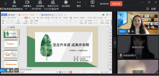 为引导封闭在校的大一新生树立正确的学习目标,养成良好的学习习惯。11月10日,学校食品药品学院中药制药2021-01班通过钉钉视频召开线上“坚定升本路,成真终有期”的主题教育班会。