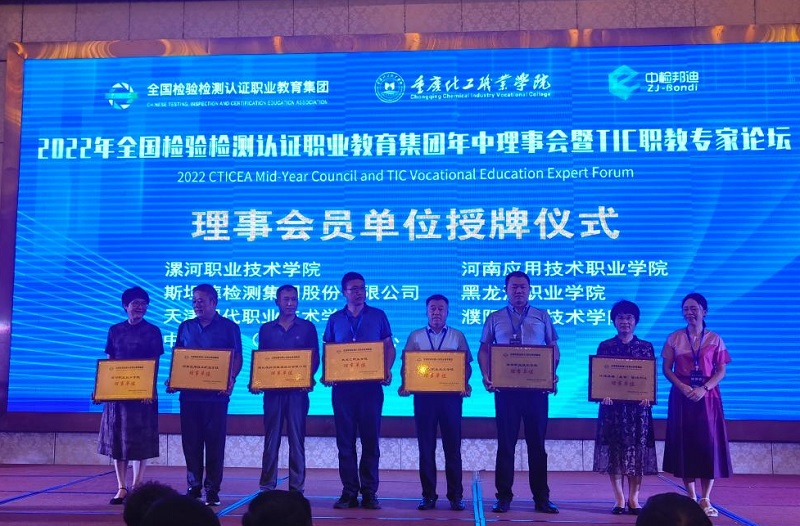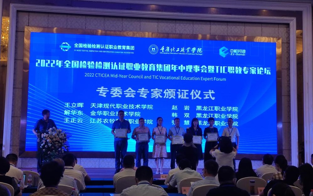 2022年全国检验检测认证职教集团年中理事会暨TIC职教专家论坛于8月5日在重庆召开,KY开元官网受邀参会并成为职教集团理事会员单位,食品药品学院院长赵岩、副院长韩双、教师张慧被聘为专家委员。