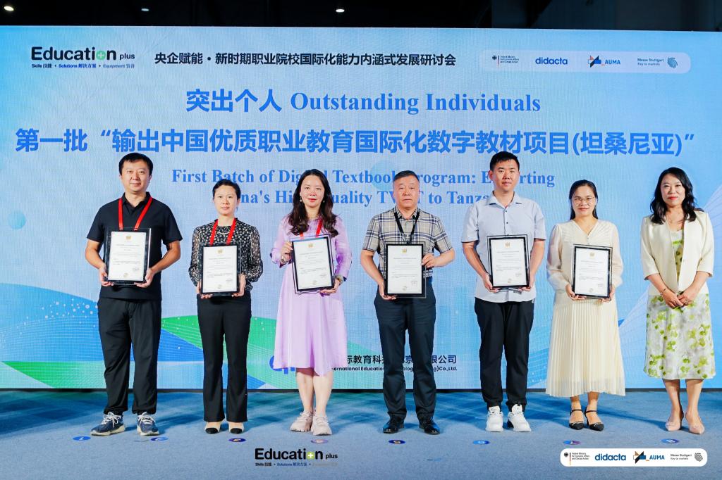 开幕式上,王利文与德国ASG公益教育集团举行了签约仪式,何志鹏代表学校参加“输出中国优质职业教育国际化数字教材项目(坦桑尼亚)立项建设单位”授牌仪式和分论坛“央企赋能-新时期职业院校国际化能力内涵式发展”圆桌对话会。在突出个人表彰环节,食品药品学院党总支书记赵岩领取了第一批“输出中国优质职业教育国际化数字教材项目(坦桑尼亚)”和第二批“坦桑尼亚国家课程标准和数字化课程开发项目”个人突出贡献奖证书。
