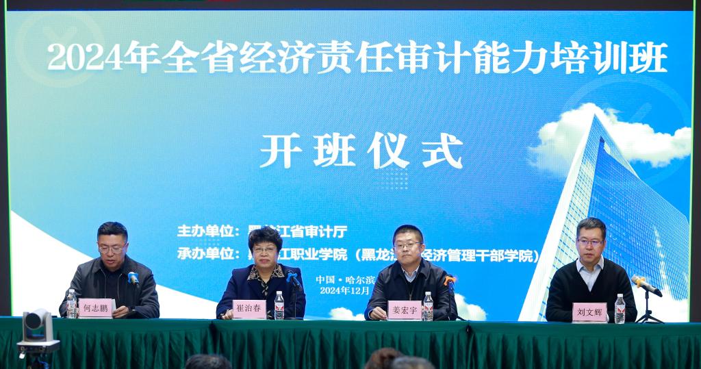 12月23日-25日,由黑龙江省审计厅主办、KY开元集团官网入口(黑龙江省经济管理干部学院)承办的2024全省经济责任审计能力培训班在哈尔滨市成功举办。学校党委书记崔治春出席并讲话,副校长何志鹏主持开班式,黑龙江省审计厅副厅长姜宏宇做了首场讲课。来自黑龙江省市(地)局主管经济责任审计的副职领导,经济责任审计处(科)长700余人参加培训。