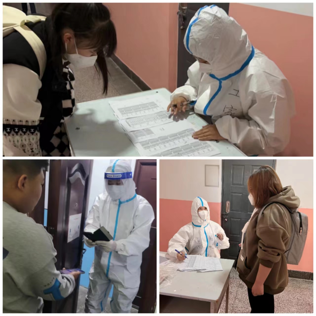 由于疫情形势复杂多变,10月30日,学校要求立即排查来自绥化地区和龙江健康码红码的学生情况,下沉教师们连夜到学生寝室询问并登记,配合学校迅速转移学生到培训楼隔离。在接下来的几天中,大家依然坚定信念,坚守初心,以持续的热情和必胜的决心圆满完成了工作任务。