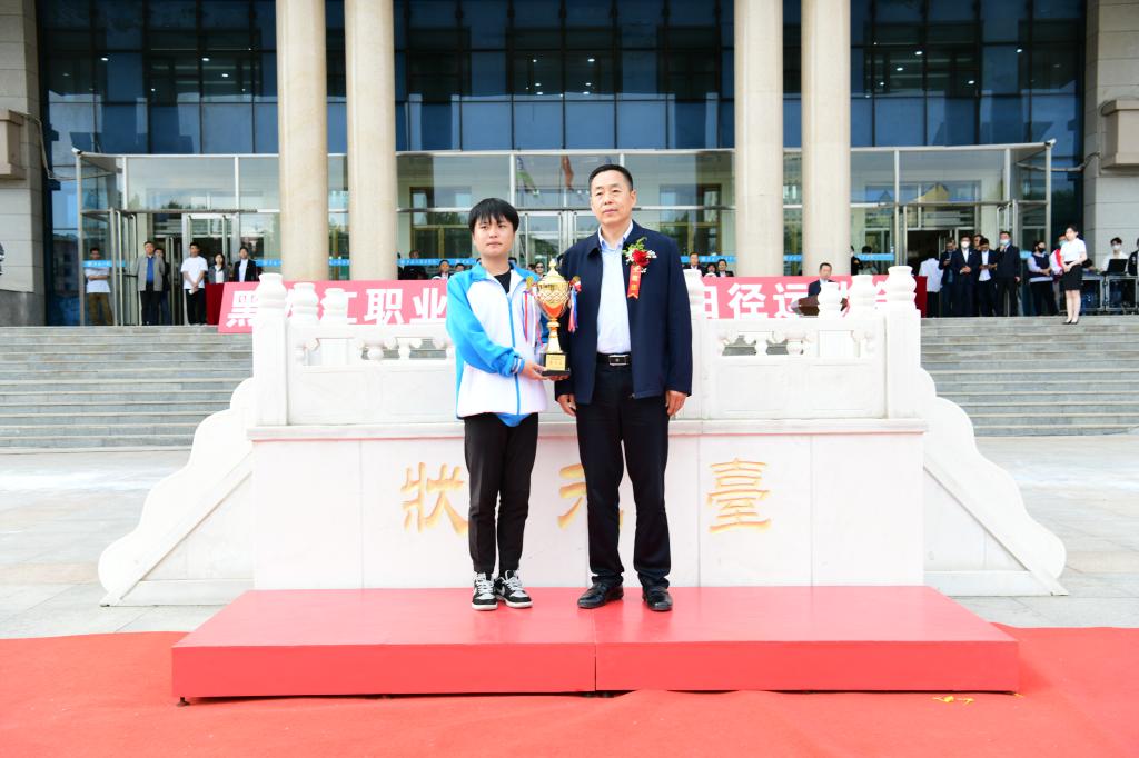 ▲党委委员、副校长吴艳秋为团体总分第一名颁奖