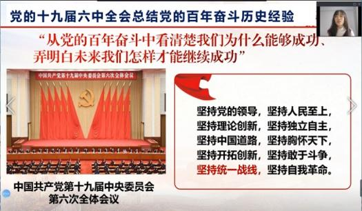 党的十九届六中全会审议通过的《中共中央关于党的百年奋斗重大成就和历史经验的决议》,全面总结了党的百年奋斗重大成就和历史经验。作为新时代思政课教师,要善用大思政课,有责任、有义务带头研究好、阐释好、传播好党的十九届六中全会精神,推动党的十九届六中全会精神进课堂,及时把党的重要会议精神讲好、讲清楚、讲到位。利用“开学第一课”带领学生学习十九届六中全会“历史决议”的重要内容,引导学生从党的百年奋斗历程中看清我们党为什么能成功,弄明白怎样才能继续成功,更加坚定地感党恩、听党话、跟党走,赓续红色血脉、坚定理想信念。