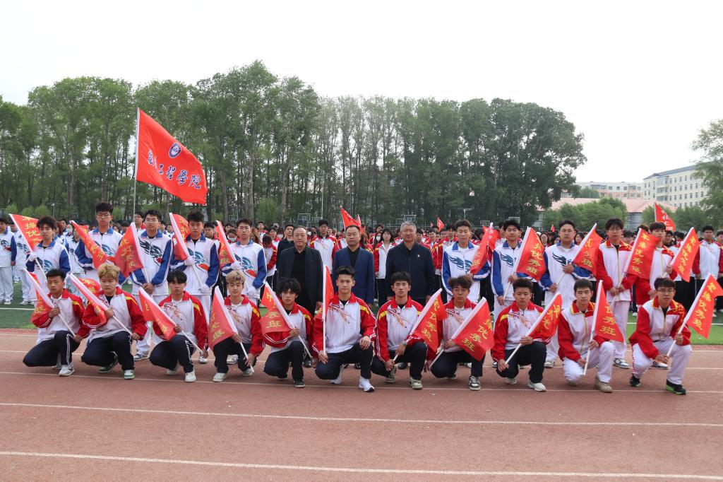 学生工作部副部长于满昌宣读《2023-2024学年度第二学期学生早军操表彰奖励决定》,赵彦生、张晓东、王福胜为获奖集体颁发奖旗。