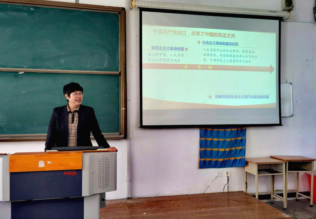 为深入贯彻落实习近平总书记对学校思政课建设作出的重要指示精神,全面贯彻党的教育方针,落实立德树人根本任务,推动党的创新理论入脑入心,充分发挥新时代伟大成就的教育激励作用,6月5日,学校党委书记崔治春走进《形势与政策》课堂,为智能制造技术学院学生讲授了“全过程人民民主的生动实践”。