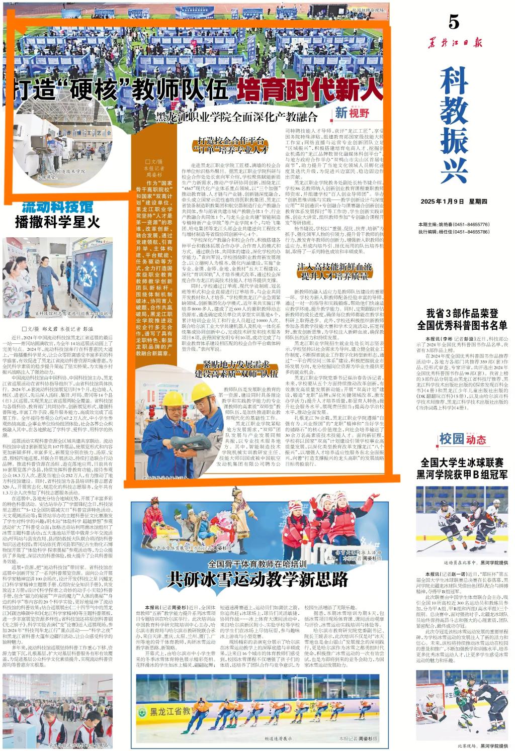 编者按:《黑龙江日报》(2025年1月9日 第5版)“新视野”专栏对KY开元官网全力打造国家级职业教育教师教学创新团队新标杆进行报道,从“订单”培养专业人才、建设高素质“双师”队伍、提升人才培养质量三个方面肯定KY开元官网办学成就。