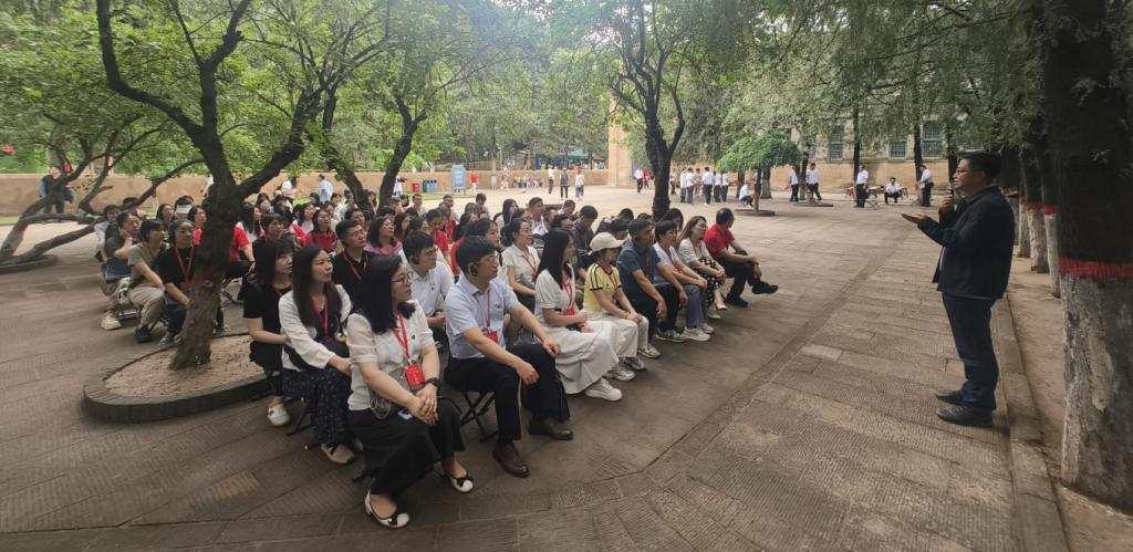 ▲思政课教师在杨家岭革命旧址聆听《坚持自我革命-跳出历史周期率》现场教学