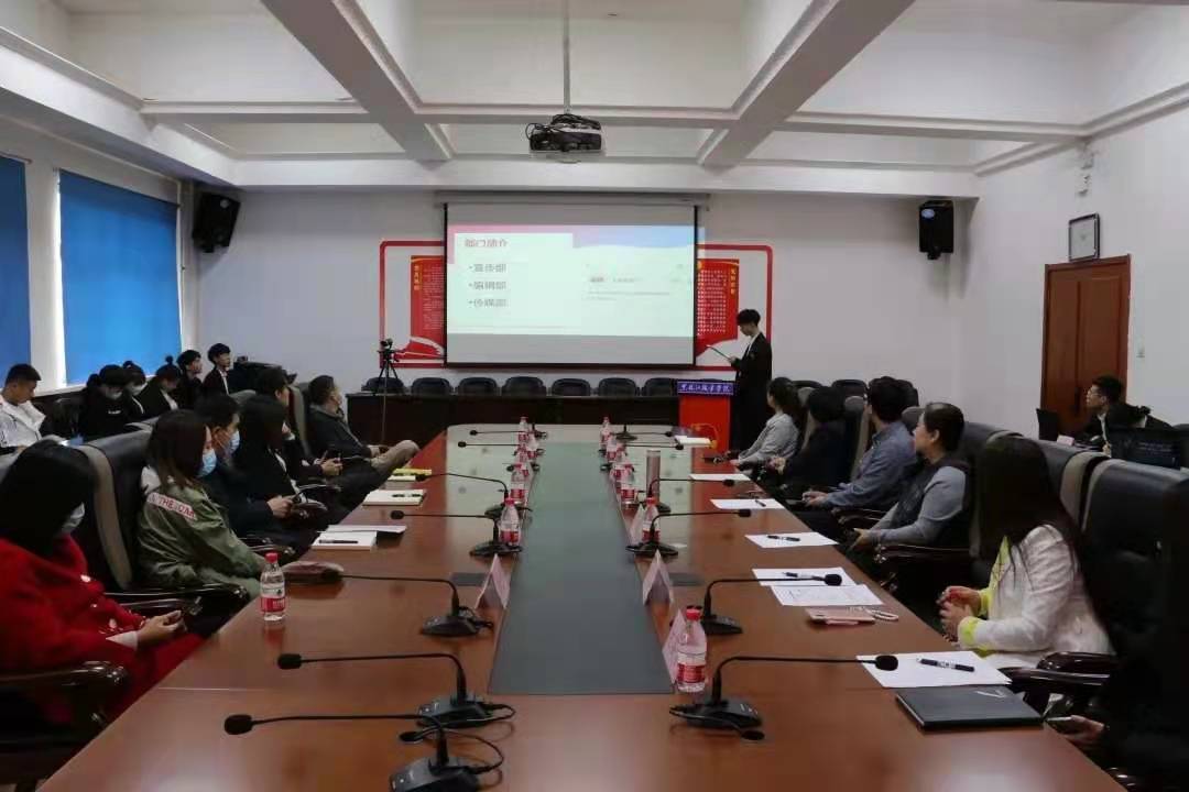 在一校区,宣传统战部副部长马欣,校团委书记邹春雷、副书记杜超,宣传统战部胡冰、刘岩、纪姿含六位老师构成评委团,各二级学院团总支书记、副书记参加了评比会。会议由校团委学生副书记刘丽利主持。