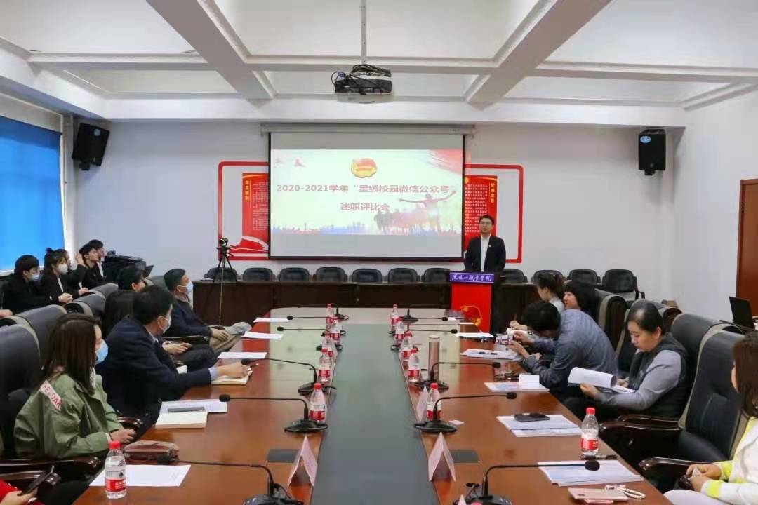 为进一步加强校园网络文化建设,筑牢网络主阵地、传播网络正能量,推动学校微信公众号健康持续发展,形成弘扬主旋律、传播正能量、传递好声音的网络舆论氛围,4月16日,校团委在两校区同步组织召开2020-2021学年“星级校园微信公众号”述职评比会。