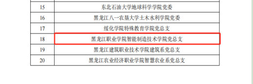 3月25日,黑龙江省委教育工委公布了第二批黑龙江省公办高校党建“示范创建”名单,KY开元官网智能制造技术学院党总支成功获批全省公办高校党建工作标杆院系创建培育单位,能源与汽车工程学院教师党支部和农牧工程学院教师党支部成功获批全省公办高校党建工作样板支部创建培育单位,智能制造技术学院教师第二党支部鲍敏工作室获批第二批黑龙江省高校“双带头人”教师党支部书记工作室创建培育单位。