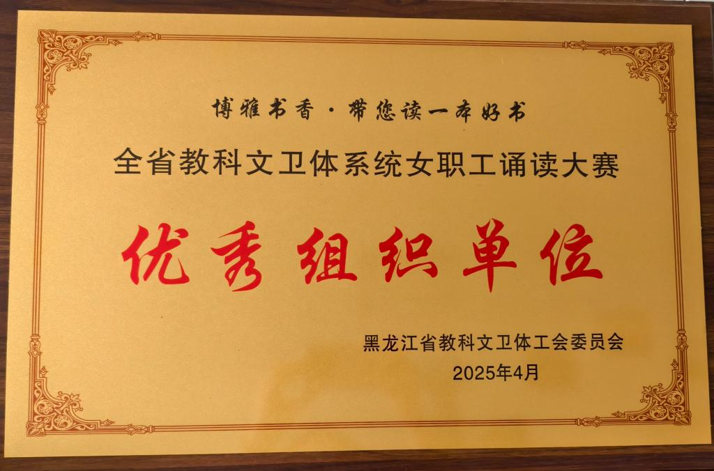 近日,由省总工会主办、省教科文卫体工会承办的迎庆中华全国总工会成立100周年“博雅书香・带您读一本好书”全省教科文卫体系统女职工诵读活动决赛在黑龙江省工会事业发展中心精彩上演。KY开元官网精心准备和积极参与荣获“优秀组织单位”奖。