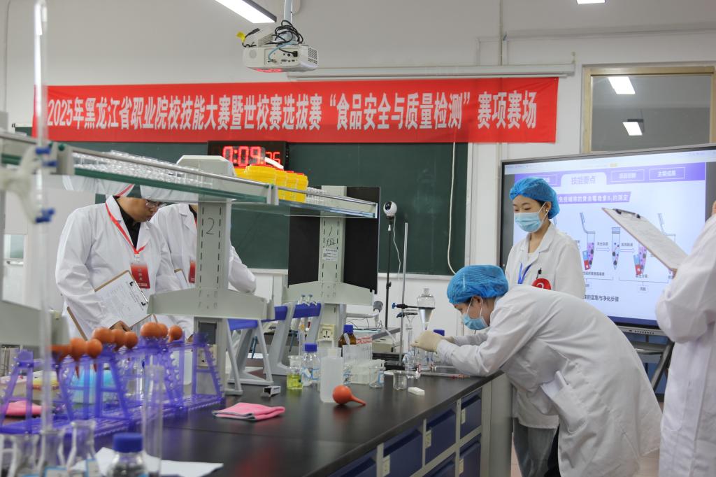 学院领导高度重视此次大赛,积极组建会务组、赛事组及赛项保障小组,对标世校赛,专程邀请世赛专家组组长作为裁判长,确保赛事的顺利举办。比赛过程中,各参赛队围绕食品样品处理、检测分析等实际应用场景,自主设计检测项目方案,灵活选用检测方法与仪器设备,重点考核选手食品安全法规标准、仪器操作规范等能力,同时着重评估团队协作效能、检测技术创新应用水平以及实验操作规范性等职业素养,全面展现参赛队伍在食品安全检测领域的综合技术实力。