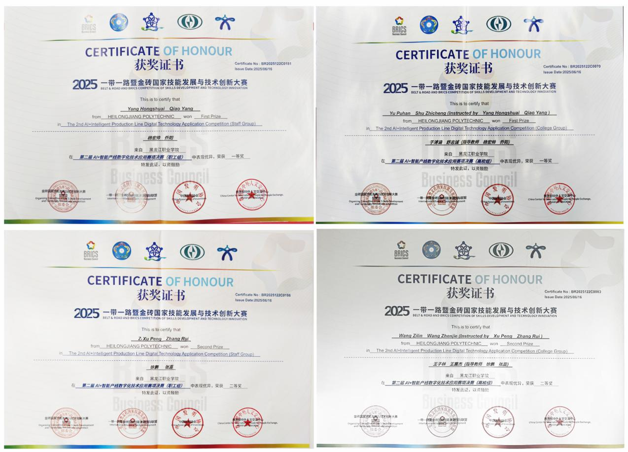 此次技能大赛取得的优异成绩是对学校专业教学改革成果的有力验证,智能制造技术学院以竞赛成果为契机,聚焦数字经济、智能制造等重点产业方向,持续深化教育教学改革,推进人工智能赋能职业教育高质量发展,打造国际化师资队伍,培养兼具扎实专业知识与精湛实操技能的国际化高素质技术技能人才,为龙江构建“4567”现代产业体系、推动产业升级和经济高质量发展注入源源不断的人才动力。