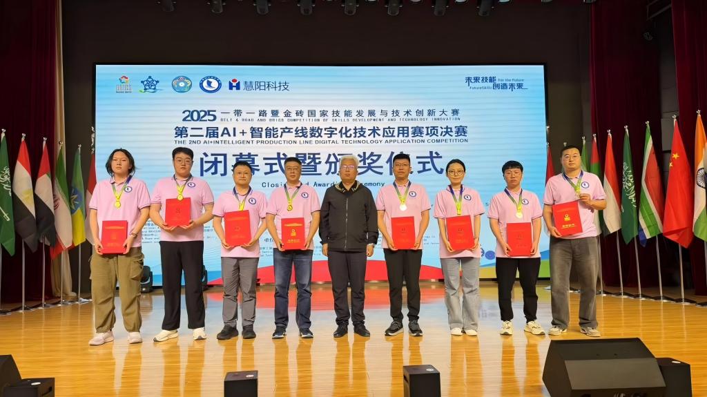 6月13日至16日,2025“一带一路”暨金砖国家技能发展与技术创新大赛第二届AI+智能产线数字化技术应用赛项决赛在辽源职业技术学院盛大举行,赛事吸引了来自11个国家的125支参赛队伍,共计66所院校249名选手同台竞技,KY开元官网智能制造技术学院选派工业机器人技术专业师生团队,分别征战职工组与高校组竞赛,并取得KY开元官网在该赛项的重大突破。