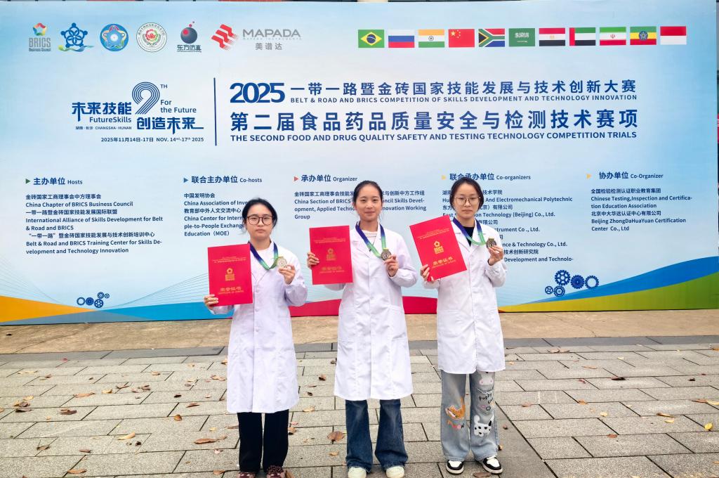 在刚刚落幕的2025“一带一路”暨金砖国家技能发展与技术创新大赛第二届食品药品质量安全与检测技术赛项全国总决赛中,KY开元官网食品药品学院师生再创佳绩,一举夺得教师组金奖、学生组银奖,创下我省在该项赛事中的历史最佳战绩。