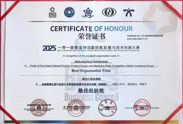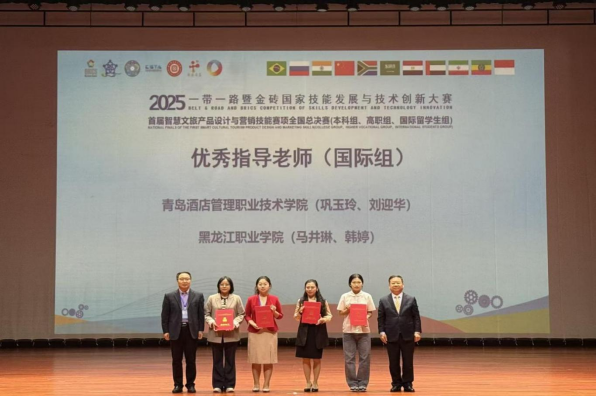 由旅游人文学院田红旭、王伟、陈心宇组成的教师团队紧扣地域文化特色与时代主题,凭借扎实的专业功底、活跃的创新思维以排名第二的成绩获教师组一等奖。陈宏洪、梁良两位老师带领的“龙职一队”,凭借扎实的专业基本功、破局性的创意设计和高效的团队协作勇夺高职组一等奖;由刘莉、苏方勇两位老师带领的“龙职二队”获高职组三等奖。由马井琳、韩婷两位老师带领的团队获得国际组二等奖,实现了学院带领外籍学生参赛获奖的“零的突破”,为学校赢得了国际荣誉。