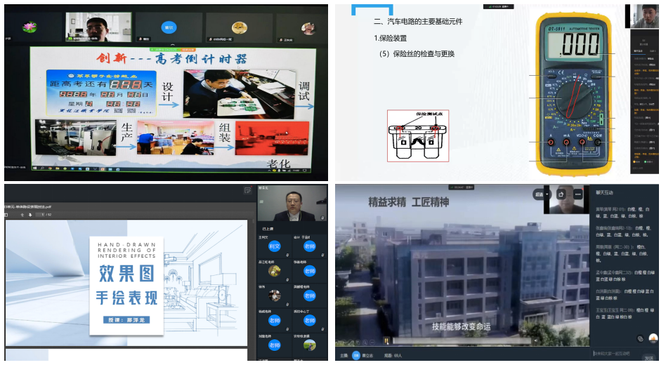 来自各二级学院(部)的12名教师精心准备,“以学生为中心”创新教学设计,将“中国精神”“工匠精神”“家国情怀”等思政元素融入各个知识点,通过在线直播平台开展多元互动,充分做到“教学内容不缩水、教学标准不降低,学习成效看得见”,为全校师生展示了一堂堂精彩生动的线上开放课。
