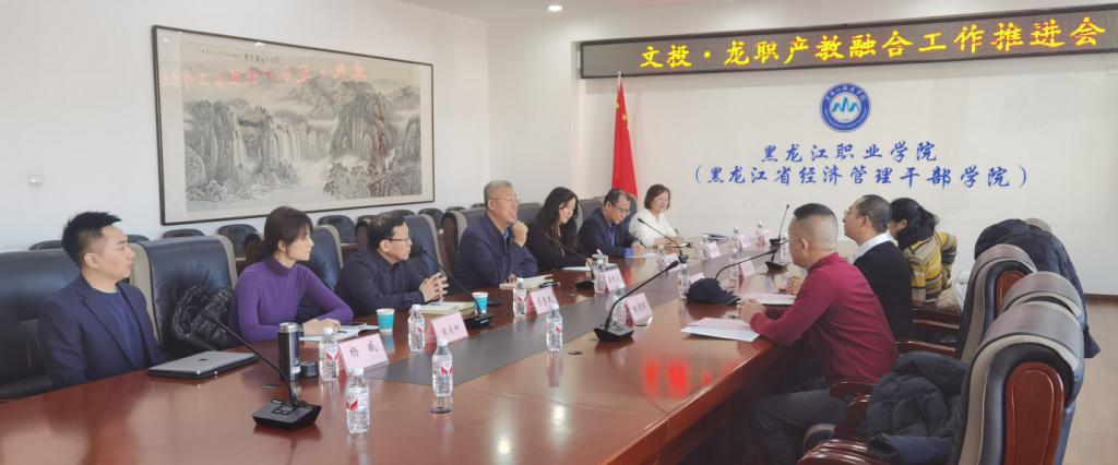 12月8日,文投·龙职产教融合工作推进会议在学校清华楼党委会议室召开。校长王利文、哈尔滨文投集团董事长王钢出席会议。