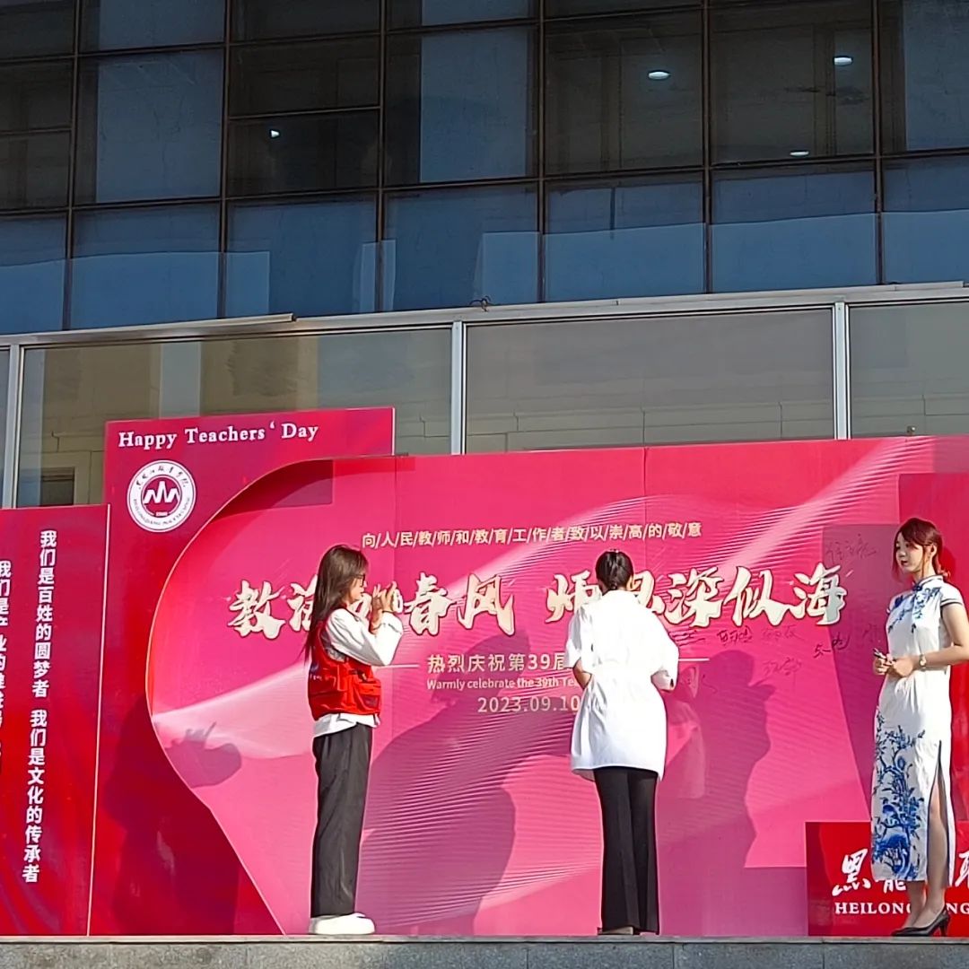 在这个金秋送爽的季节,我们迎来了一年一度的教师节。这是一个感恩的节日,也是向所有辛勤耕耘的教育工作者致敬的时刻。9月10日校团委四大学生组织志愿者们身穿蓝色马甲。代表全校同学为老师们张贴祝福贺 卡,一张简单的教师节贺卡代表了“龙职”学子们对老师诚挚的祝福和感激之情,祝愿全体老师教师节快乐!