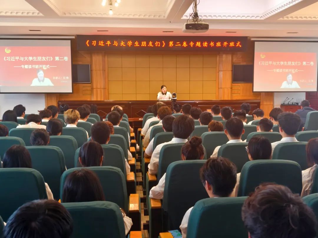 石倩书记她在讲话中指出,《习近平与大学生朋友们》(第二卷)是一本指引青年学生健康发展的成长之书,是一堂激励青年建功时代的思政大课,是一份青年工作者潜心研习的学习宝典,我们要发挥共青团在高校学生思想政治工作中主力军作用,加强青年思想政治引领。广大团员和青年师生要真学真用,带领青年学生感悟领袖风范、牢记习近平总书记嘱托,学出对党忠诚的信念,学出强国有我的担当,学出心系人民的情怀。广大团干部要善学善讲,推动党的创新理论在青年学生中入脑入心入魂,坚持党建带团建,引领青年学生为中国式现代化建功立业、挺膺担当。