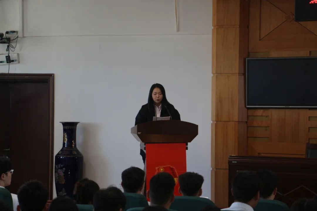 ▲校团委副书记唐晓恬宣读了大会倡议书