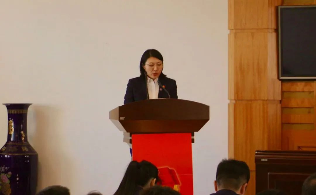 ▲学生工作部党总支书记、校团委书记石倩在开幕式上讲话