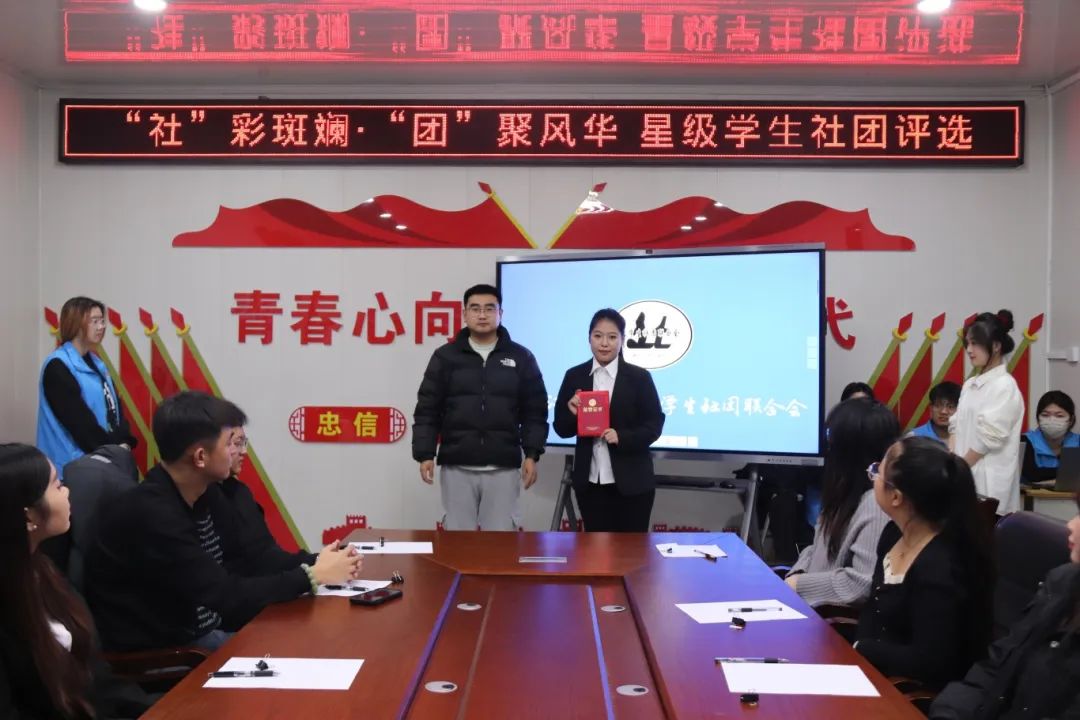 最终,由校团委学生副书记冯智慧,智能制造技术学院社联主席邓智超、能源与汽车工程学院社联主席胡哲、建筑工程学院社联副主席王元良、会计金融学院社联主席吕文欣、旅游人文学院社联主席董书畅构成的评委团,依据严格的评审标准,从各社团的活动的影响力、成员的参与度、社团的组织管理以及未来发展潜力等方面,综合考量各社团的表现,共评选出三个“五星级社团”、四个“四星级社团”、五个“三星级社团”。