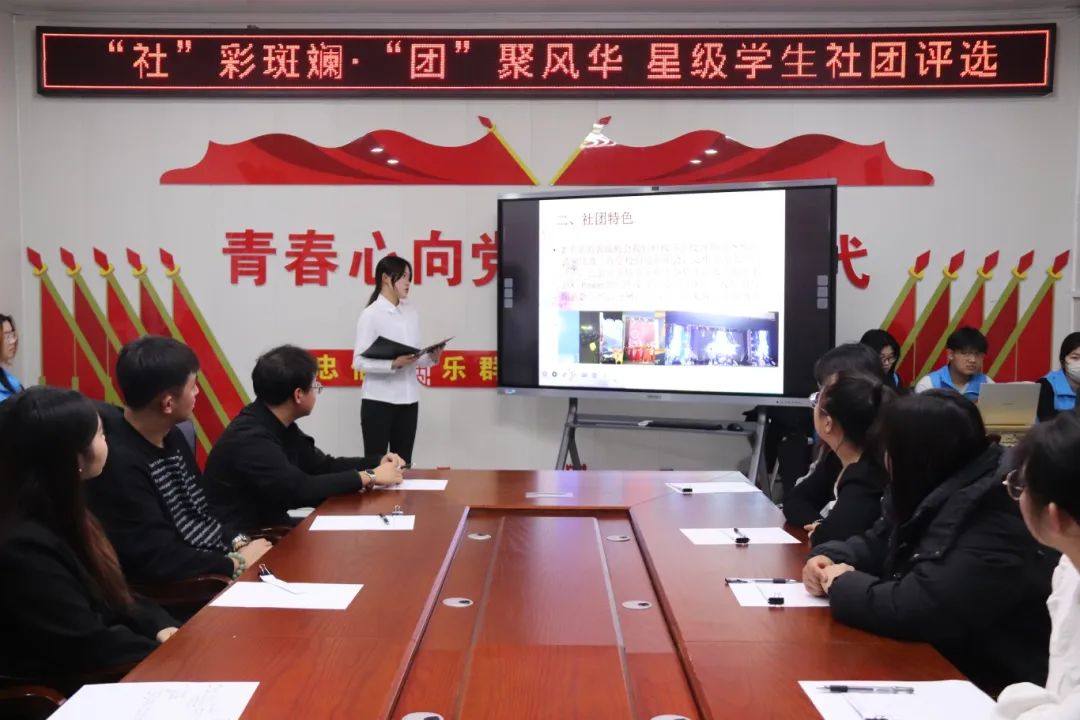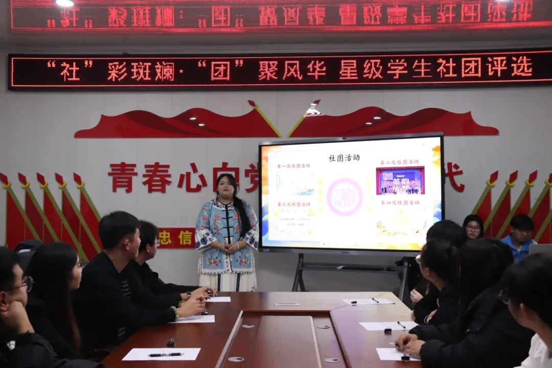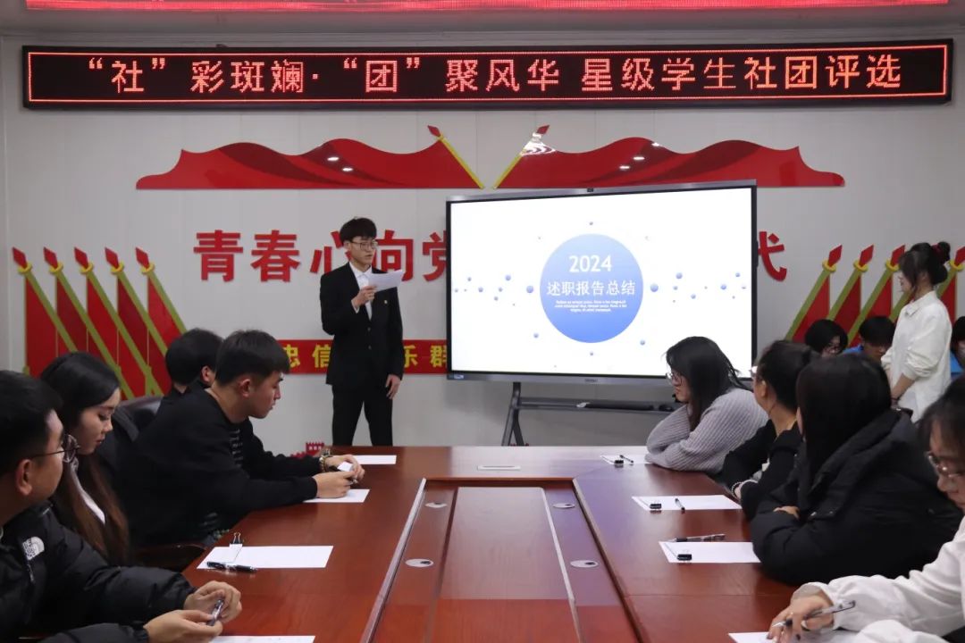 在本次“星级学生社团”评比过程中,社团社长采用PPT展示和本学期工作述职报告两个部分作为综合评量,全面展现社团的特色活动与突出成就。从丰富多样的社团活动到成员们的积极参与,从取得的显著成绩到对未来的清晰规划,每一个环节都彰显着社团的活力与创造力。