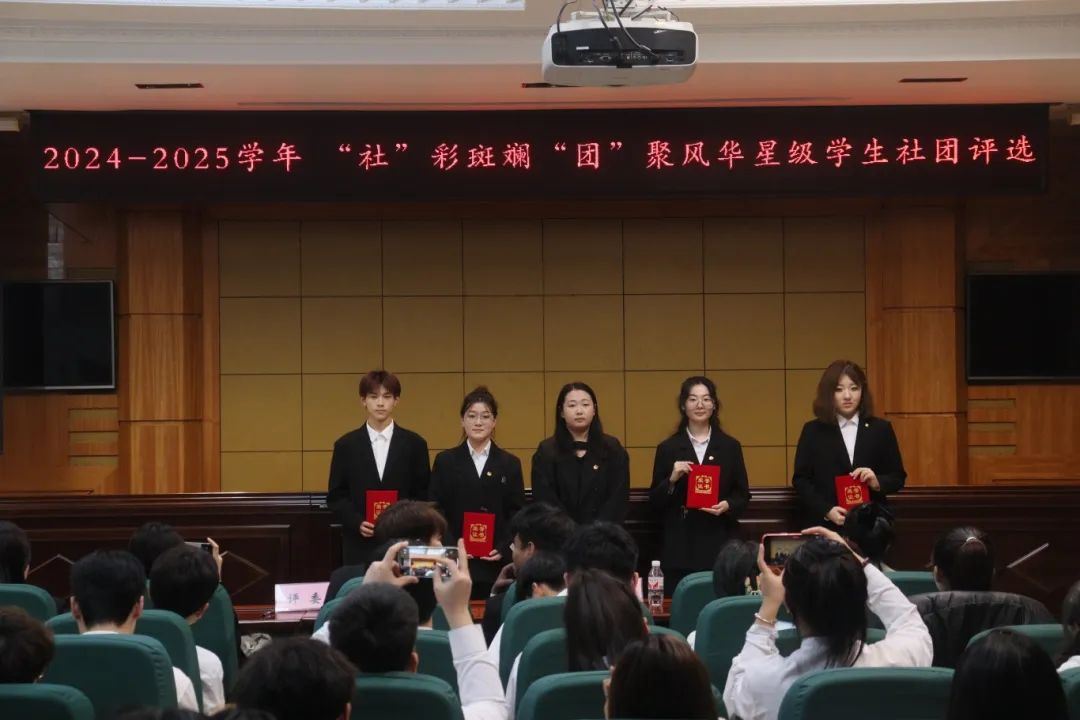 红丝带禁毒防艾社团、阳光书友社团、北斗星乐器社团荣获“五星级社团”荣誉称号;青鸟话剧社团、12号足球社团、明理宣讲社团、领尚舞蹈社团社团荣获“四星级社团”荣誉称号;青年志愿者社团、校园百事通社团、馋猫美食社团、印象摄影社团、马克思青年主义学社社团荣获“三星级社团”荣誉称号。