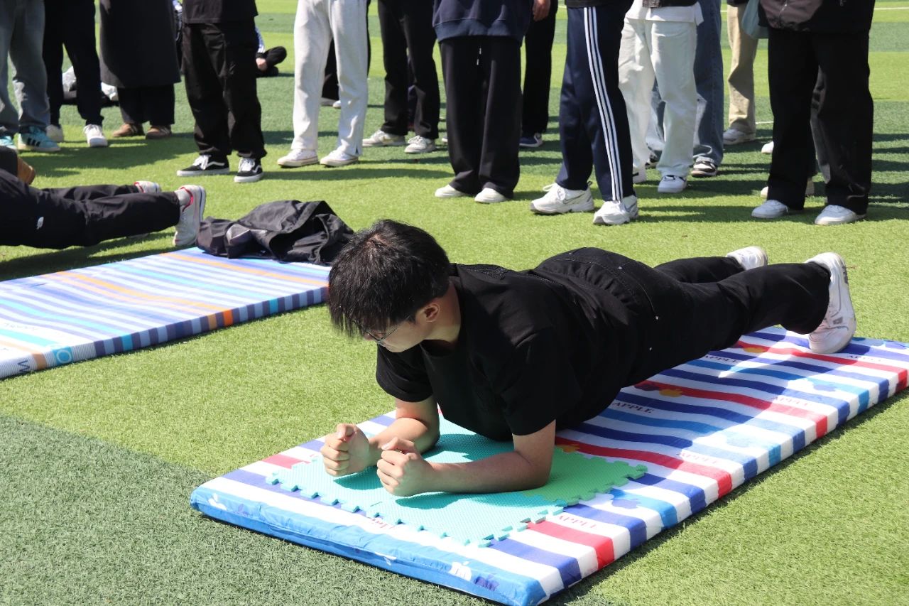 为深入贯彻落实习近平总书记关于志愿服务精神的重要论述,结合“国家健康三年行动”计划,引导学生“走下网络”“走出寝室”“走向操场”,校团委定于2025年3月20日 - 4月20日开展以“绿动青春,志愿先锋”为主题的志愿环保活动月。旨在激发同学们的运动热情、加强学生正确的健康观念,引导学生树立正确的生活习惯、运动习惯和健康习惯。4月16日开展全民健身大学生趣味体育竞赛第六期——平板支撑决赛。