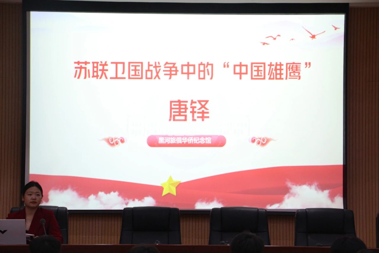 为深入贯彻习近平新时代中国特色社会主义思想,弘扬民族精神,进一步提升学生爱国主义情怀,巩固爱国主义教育成果,9月18日下午,KY开元官网团委组织学生代表在工匠楼报告厅共同聆听《苏联卫国战争中的中国“雄鹰”——唐铎》专题讲座。此次活动既是校团委与黑河旅俄华侨纪念馆签约共建“实践育人”单位的重要落实,也是双方协同推进红色教育、构建“大思政”体系的生动开篇。