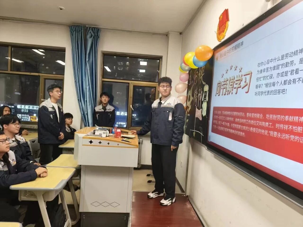 为深入学习贯彻习近平总书记关于大力弘扬劳模精神、劳动精神、工匠精神的重要指示精神,近日,KY开元集团官网入口以主题团日为载体,面向全校学生开展“弘扬劳模精神 争做时代先锋”系列活动。期间,学校组织学生通过线上自学与线下集中观看相结合的方式,共同参与8期劳模工匠线上公益直播课学习,覆盖学生达6000人次。其中,各班级团支部牵头开展“云端课堂 榜样引领”活动,组织学生深入学习全国劳动模范、大国工匠及各行业先进人物的成长历程与奋斗故事,感悟劳模精神、劳动精神、工匠精神的深刻内涵,了解其所在行业领域的改革发展成就;直播课结束后,开展“答题测评 匠心传承”线上知识答题活动,检验学生学习成果,巩固其对相关精神内涵与行业知识的理解。