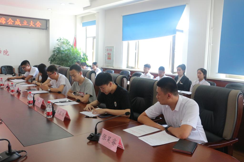会上,校团委学生副书记陈佳男宣读了《关于校公寓委、校军操委、校纪管委、校关心委、校综合委、校学信委、校伙食委2018 级主要学生干部的任命决定》;校团委学生副书记王婷婷宣读了《2018级学生组织主席团联席会人员构成名单》。会上,通过民主投票选举产生2018级学生组织主席团联席会三名副理事长;校团委学生副书记朱鑫浩宣读了《2018 级学生组织主席团联席会正副理事长的任命决定》;校团委学生副书记陈宇航宣读了《2018级学生组织主席团联席会正副理事长分工分管决定》。
