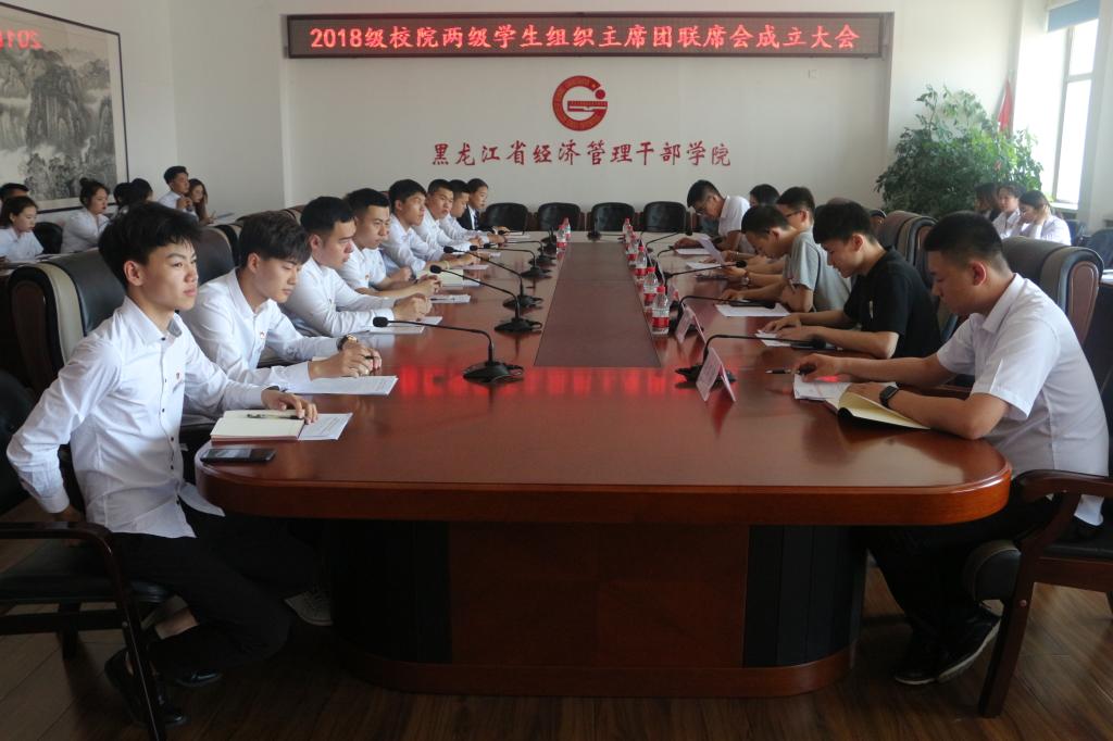 6月24日中午,校团委组织召开了2018级校院两级学生组织主席团联席会成立大会。校团委书记邹春雷出席会议并作了讲话,来自校学生会、校社团联合会、校新媒体中心、校学生纪管委、校学生公寓委、校学生军操委、校学生关心委、校学生综合委、校学生信息委、校学生伙食委以及各分院团总支副书记、学生会主席、社联主席 等42名同学参加了会议。会议由校团委学生副书记朱鑫浩主持。