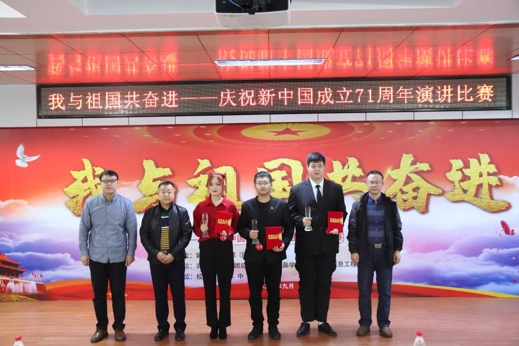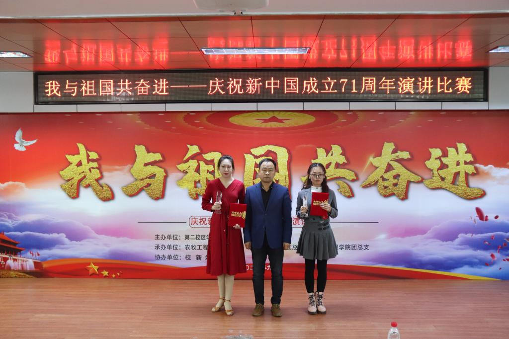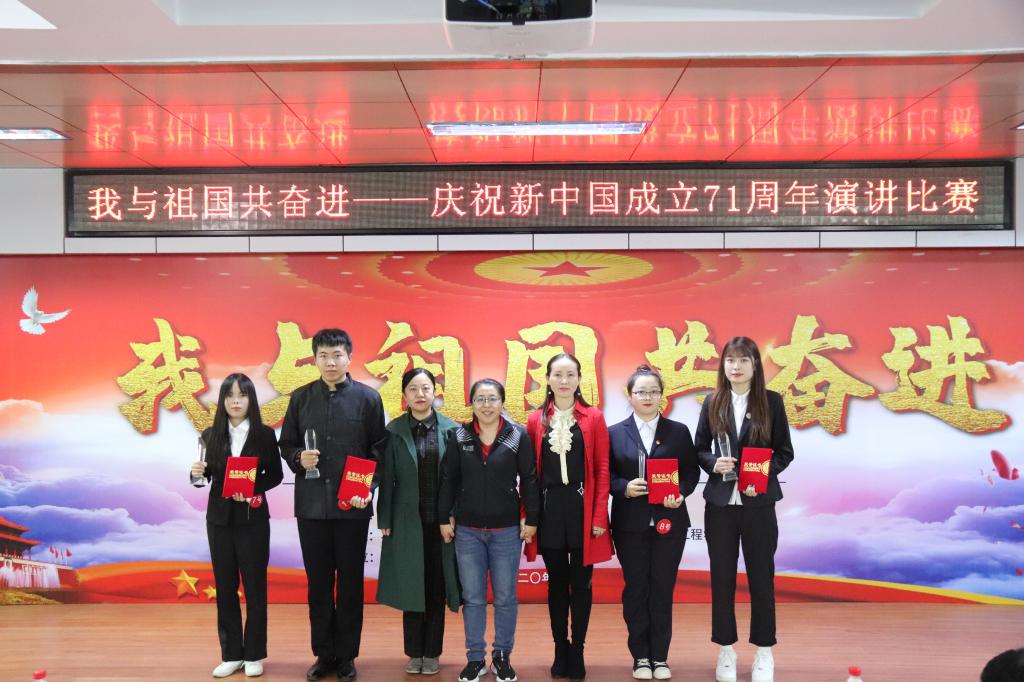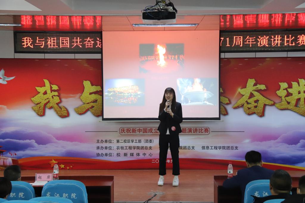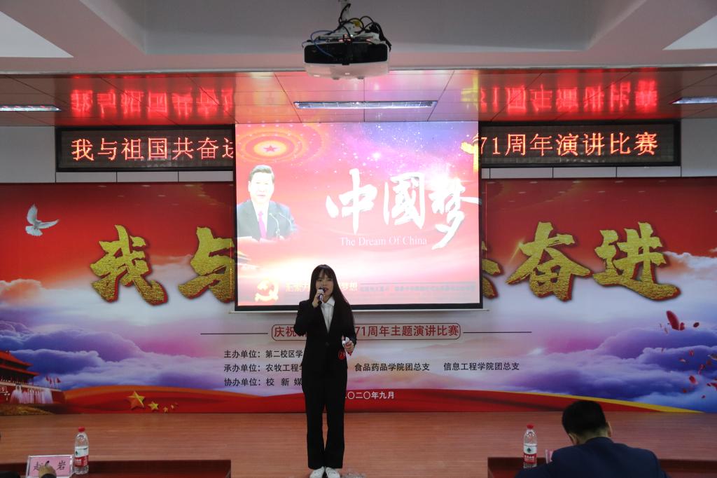 2020年9月29日,第二校区学工部(团委)组织开展“我与祖国共奋进——庆祝新中国成立71周年”主题演讲比赛。学工部副部长赵彦生、农牧工程学院党总支副书记赵岩、食品药品学院党总支副书记车延平、信息工程学院党总支副书记张晓霖,以及学工部各科室负责人和各二级学院团总支书记等参加活动,并特邀思政教研室主任张丽艳、通识教育学院中文教研室副主任汤艳玲、通识教育学院体育教研室副主任韩秀红担任评委。