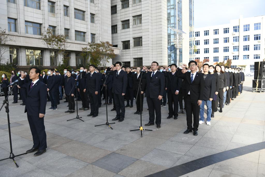 在开学典礼上,举行了2020级全体新生和新入职教师宣誓,用誓词表达甘当铺路石,自强有为、兴业报国的情怀。