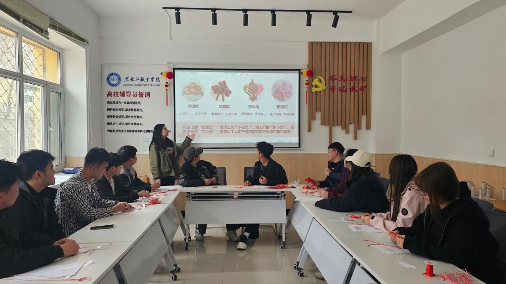 为深入践行“三全育人”理念,推动中华优秀传统文化创造性转化,4月17日、24日公寓辅导员张雪婷、石影、孙彩月、张嘉馨走进学生社区组织开展了两期“红绳巧编 结结生花”非遗技艺中国结手工制作实践活动。