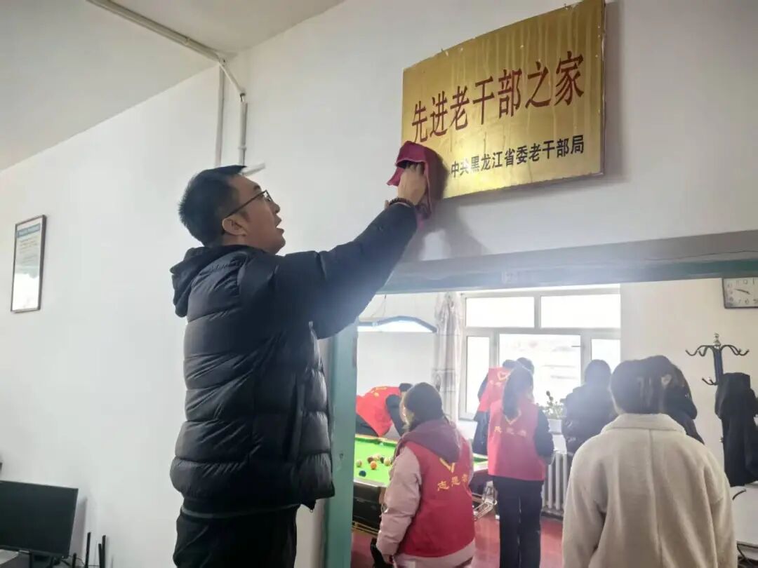 活动现场,在公寓辅导员的统筹协调下,学生干部迅速分工、默契配合。大家手持清扫工具,对活动室、会议室、办公室进行全面清洁:仔细擦拭桌椅窗台的灰尘,认真清扫地面杂物,有序规整各类器材,全力消除卫生死角,为老教师们营造出整洁、舒适的活动环境。